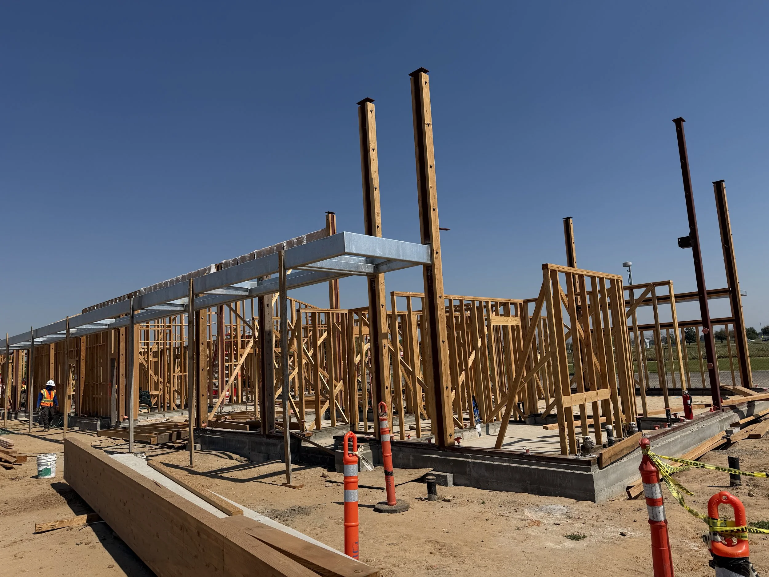 In partnership with Quiring General, our team is currently working on the construction of of the ISE (Isaiah, Samuel, and Elijah) Diamond L.I.F.E. (Learning Is For Everyone) Sports Complex in Fresno, CA. This sports complex will elevate the student-athlete experience at Clovis Community College and will be a point of pride for the campus and the community. Our scope of work includes rough carpentry framing of the main student support building, which will be the home of a new athletic training room, locker rooms, and showers, and other amenities.